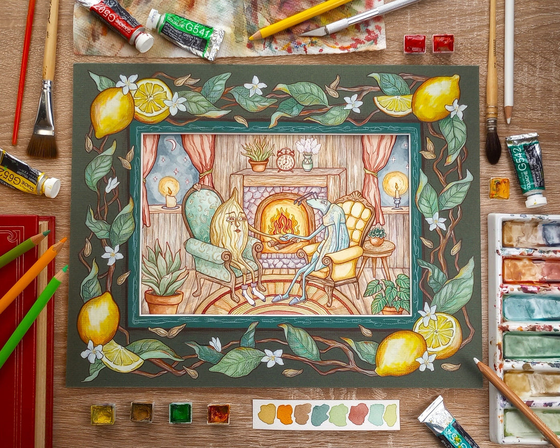 "The Lemon Seed" was an especially fun piece to illustrate because I tried out some new techniques and materials, and was really happy with the end results—a thing that can't be said for all experimentation. 😆