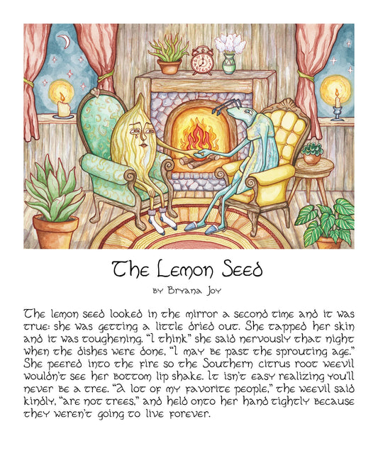 "The Lemon Seed" Original Watercolor Painting with Custom-Painted Mat (UNFRAMED, 11x14 inches)