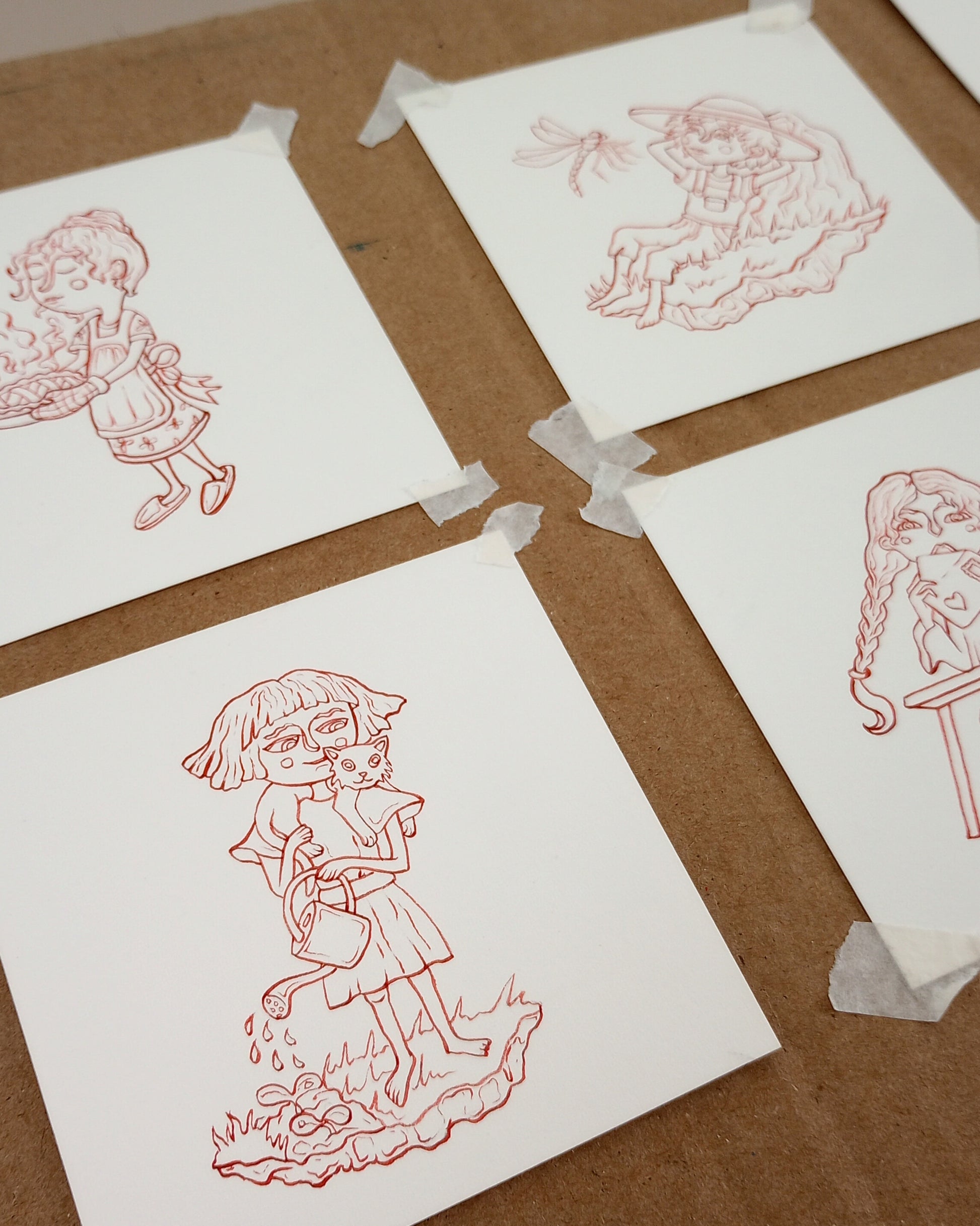 This listing is for one or more of the six original illustrations Bryana painted for the self-care dice. These whimsical miniature original paintings are each approximately 3.5x3.5 inches in size and $25 apiece. You can pick the one you want using the menu on the sidebar above. All are unframed original watercolor illustrations on hot-pressed Arches watercolor paper. The illustrations come signed by the artist and with the title penciled in on the back. These are original paintings, not prints.