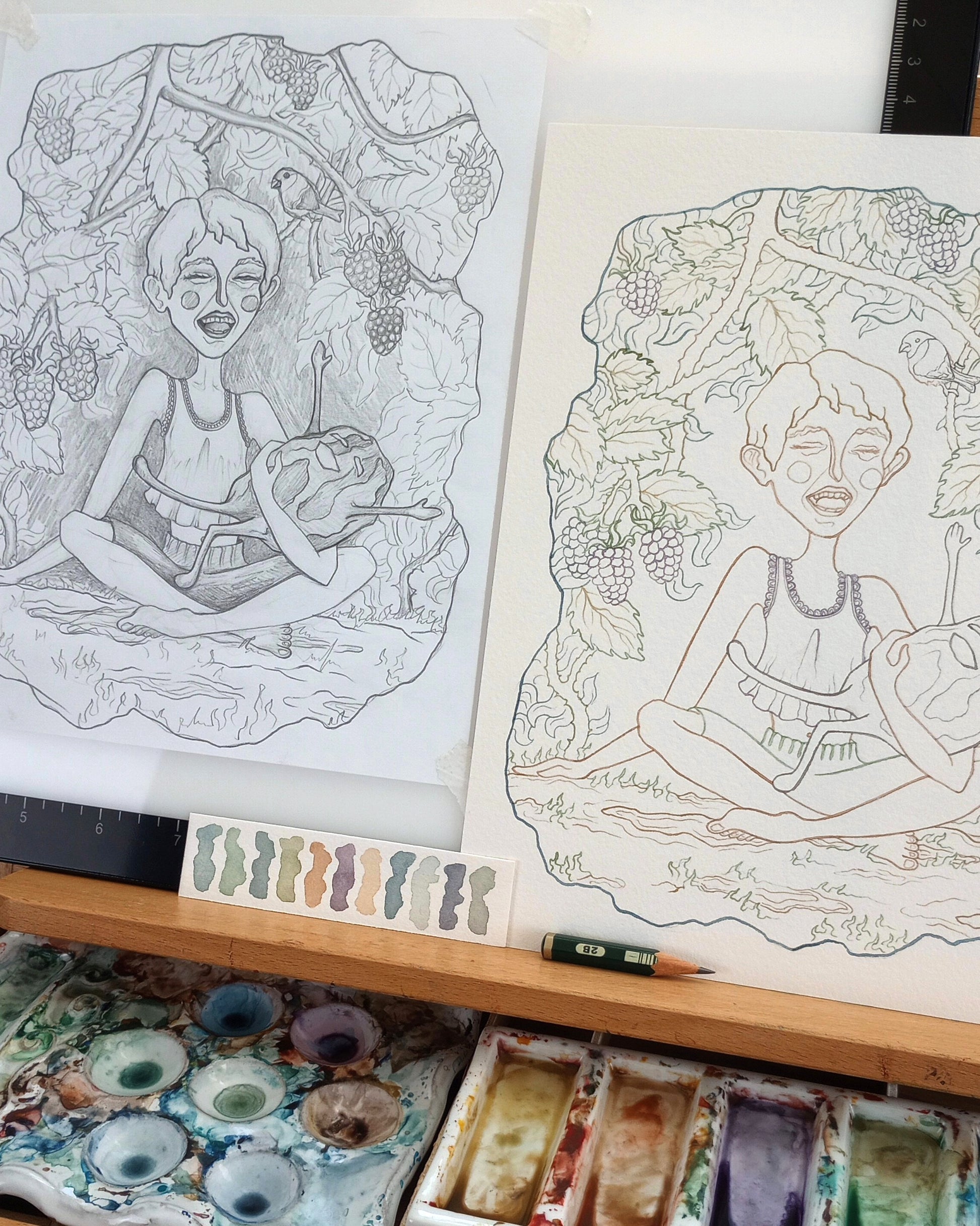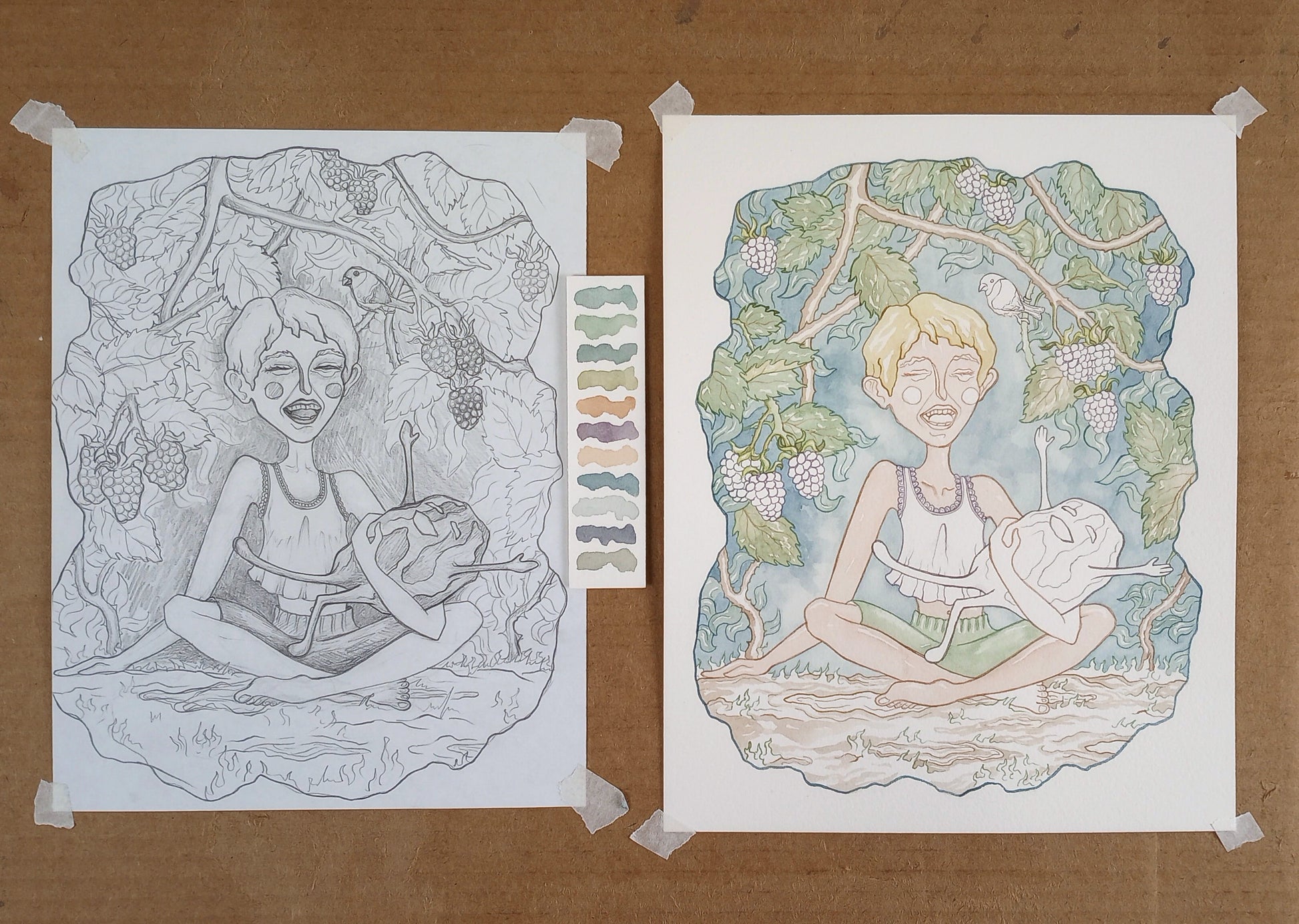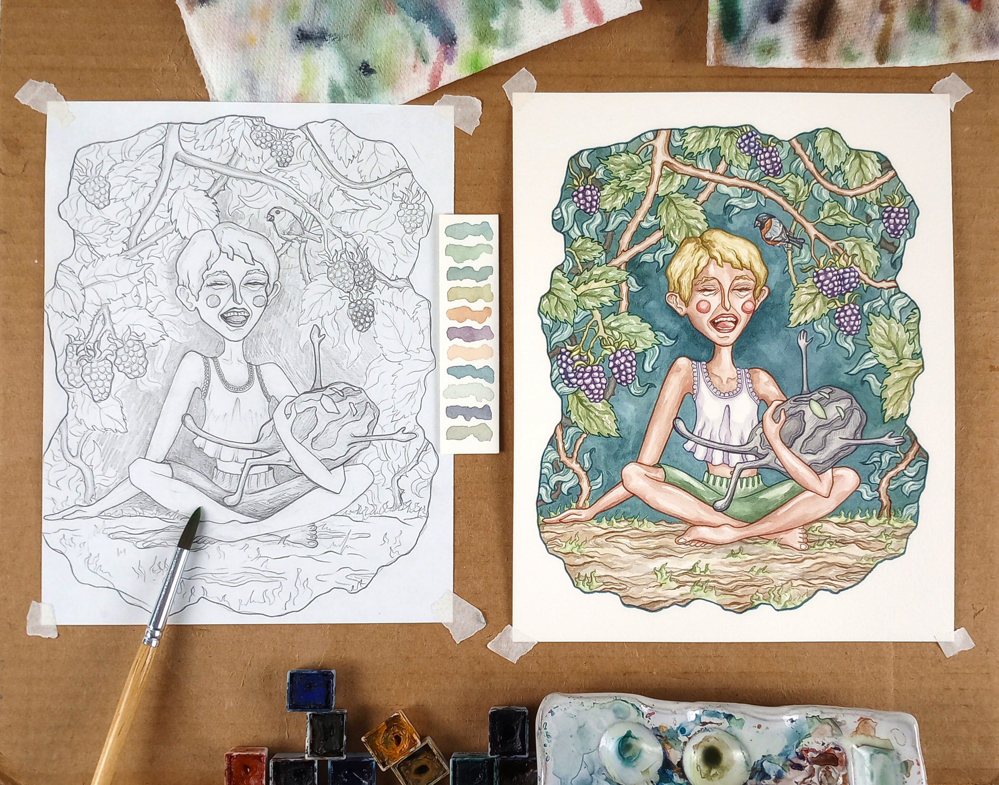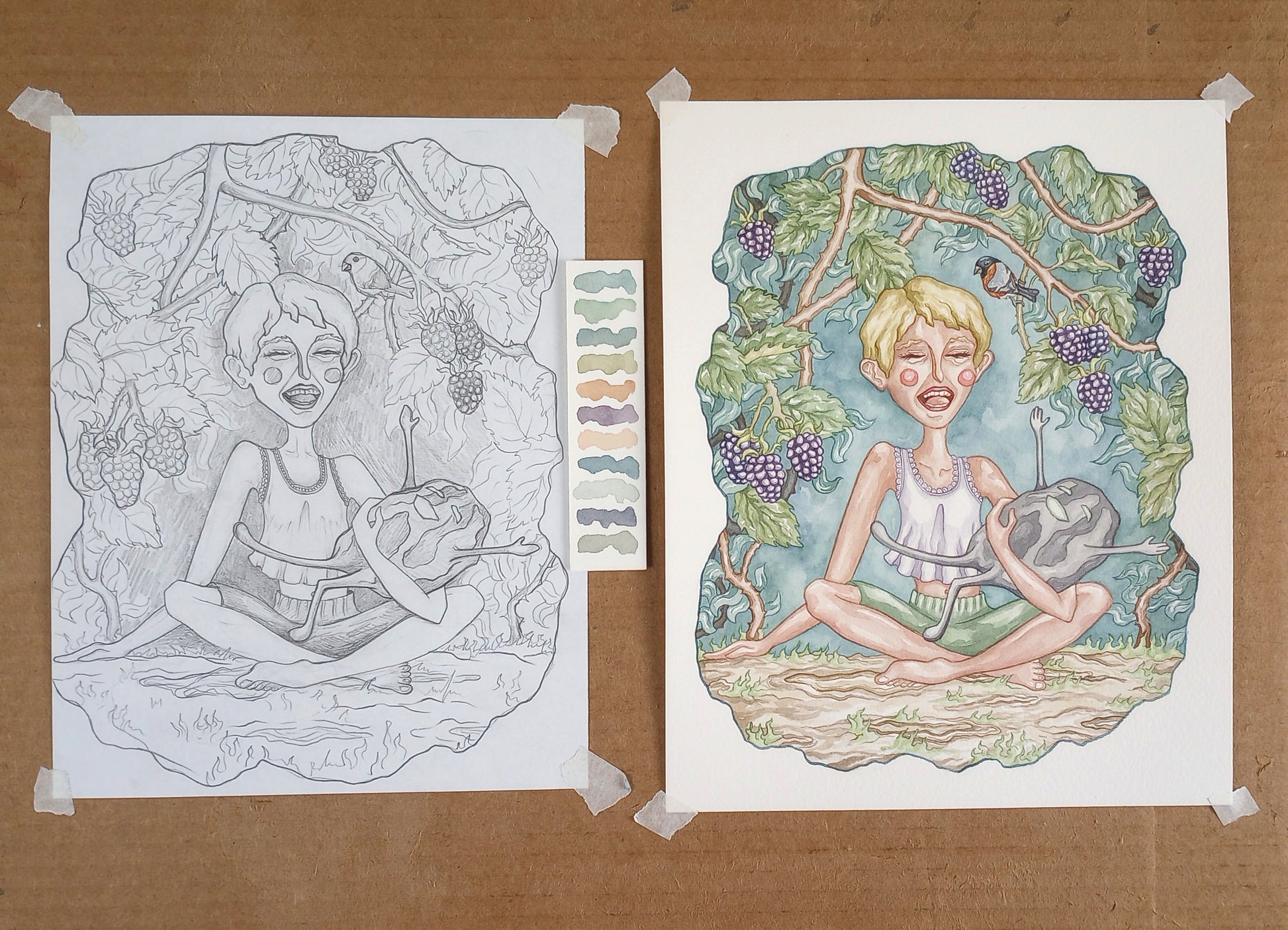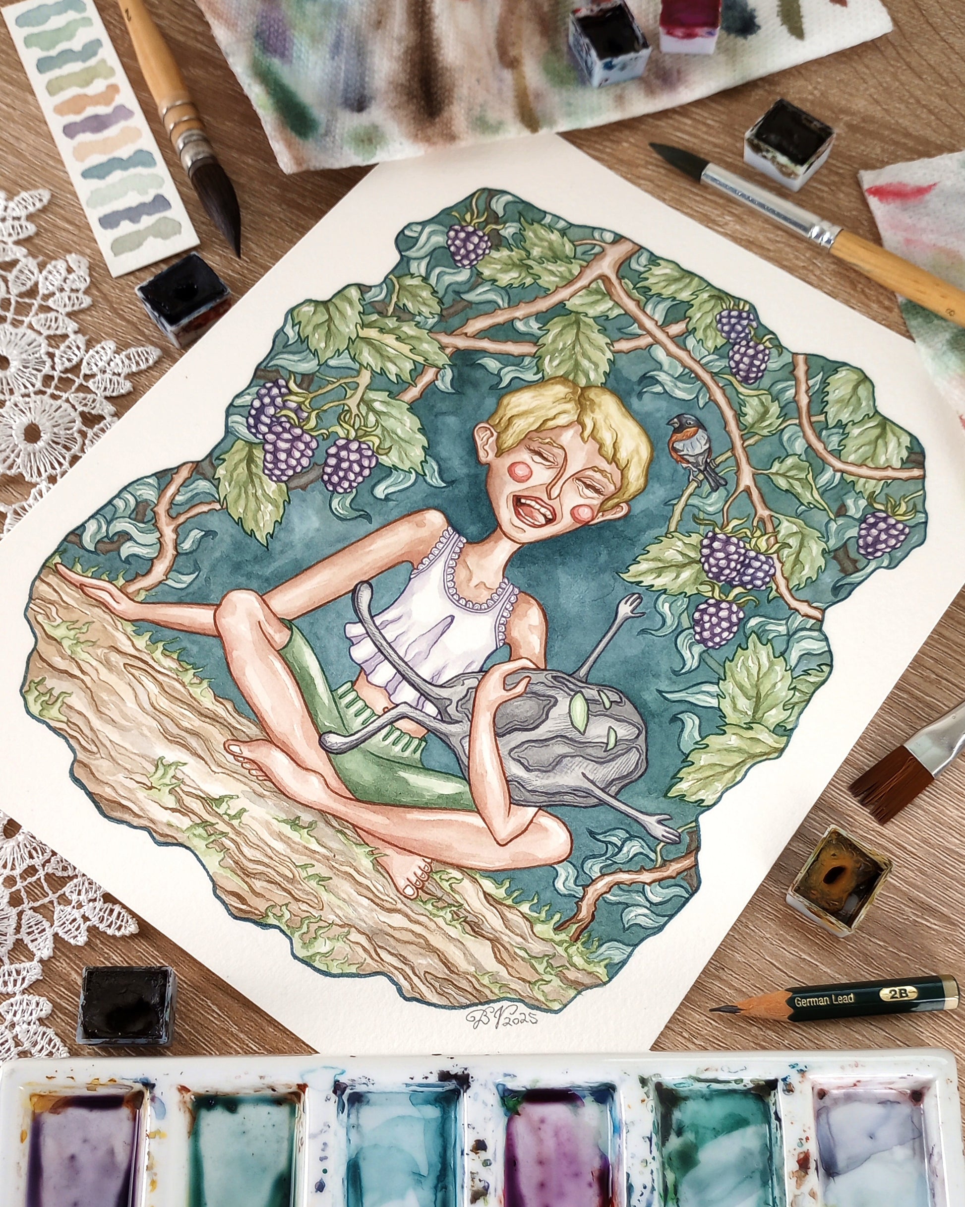 "The Blot" Original Matted Watercolor Painting (9x12 inches)