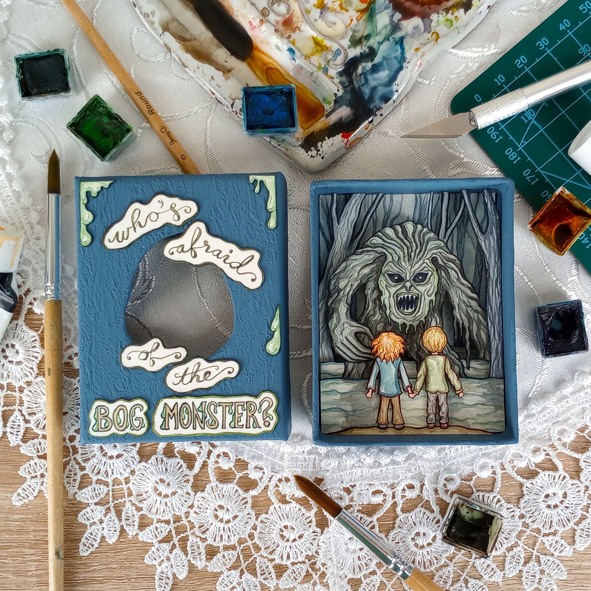"Who's Afraid of the Bog Monster?" — Original Miniature Watercolor Diorama Box